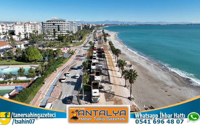Konyaaltı Sahili Çevre Düzenleme Projesinde kapsamında Antalya Büyükşehir Belediyesi tarafından yürütülen çalışmalar son hızıyla sürüyor. Boğaçayı ile Liman arasını kapsayan alanda onlarca kamyon ve iş makinesi çalışıyor.