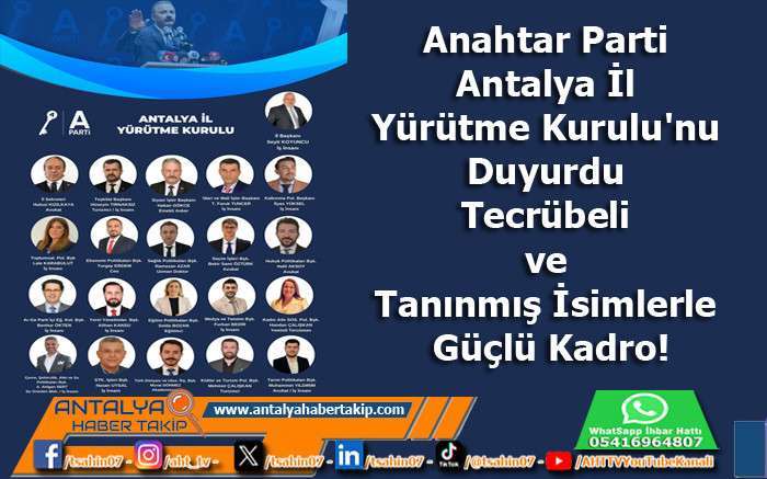 Anahtar Parti Antalya İl Yürütme Kurulu'nu Duyurdu: Tecrübeli ve Tanınmış İsimlerle Güçlü Kadro!