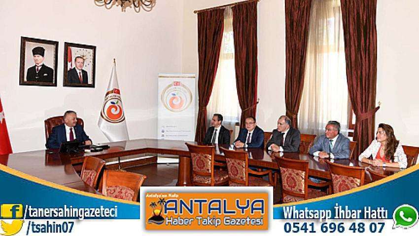 15-22 Nisan Turizm Haftası etkinlikleri kapsamında Vali Ersin Yazıcı’yı ziyarete gelen İl Kültür Turizm Müdürü Candemir Zoroğlu’na AKTOB Başkanı Erkan Yağcı, ATAV Başkanı Yeliz Gül Ege ve turizm sektör temsilcilerinden oluşan heyet eşlik etti. Gelen heyetin Turizm Haftasını kutlayan Vali Ersin Yazıcı çalışmalarında kolaylıklar ve başarılar dileyerek turizmin Antalya ve ülkemiz için önemine vurgu yaptı.