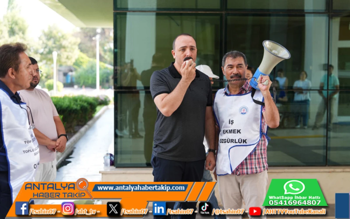 Konyaaltı Belediye Başkanı Cem Kotan, memura teklif edilen zam oranını protesto etmek için Konyaaltı Belediyesi önünde toplanan memurlara destek verdi.
