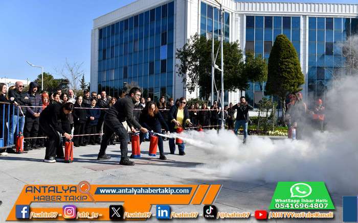Antalya’da Muratpaşa Belediyesi Afet İşleri Müdürlüğü, belediyenin ana hizmet binasında personelle yangın tatbikatı gerçekleştirdi.
