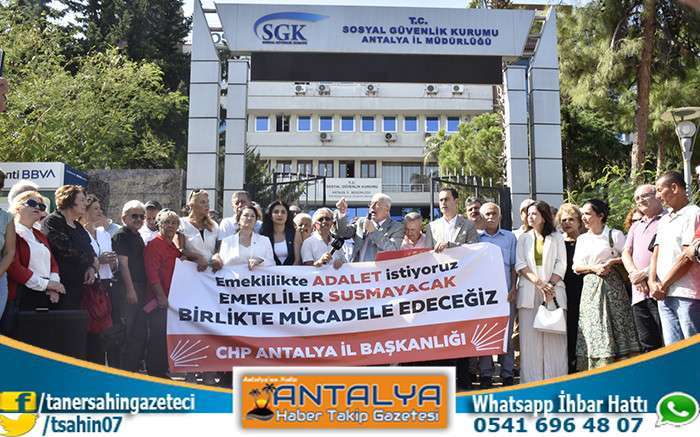 Cumhuriyet Halk Partisi Antalya İl Başkanı Nail Kamacı, İl Yöneticileri ve tüm il örgütleri, birçok Oda, Sendika Sivil Toplum kuruluşları, Partililer ve vatandaşları ile birlikte Sosyal Güvenlik Kurumu Antalya İl Müdürlüğü Önünde basın açıklaması düzenledi.