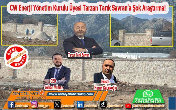 Antalya'da kamuoyunun dikkatini çeken bir arazi anlaşmazlığı yaşanıyor. İddialara göre, hukuki süreçleri devam eden bir arazinin 1500 metrekarelik bölümünü, CW Enerji Yönetim Kurulu Üyesi Tarzan Tarık Savran'ın kendi mülkü gibi göstererek kapattığı konuşuluyor. Mahkemelik olmasına rağmen söz konusu arazi üzerinde çeşitli müdahalelerin yapıldığı belirtiliyor.