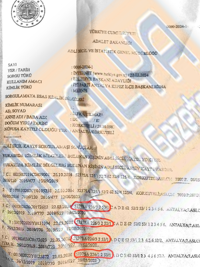 Yerel Seçimlerde İyi Parti Kepez Belediye Başkan Adayı olan İrfan Yılmaz adaylık başvurusu yaptığında TCK-226-3’ün işlediği bu suçun kişinin adli sicil arşiv kaydında çıkacağını bilmesine rağmen aday olması şaşırtıcı ve manidar akla bu ne gibi pazarlıkların içinde olduğunun da iddialarını getiriyor.