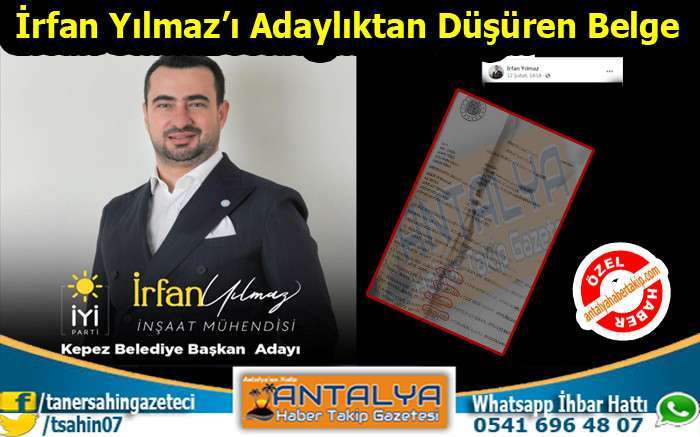 İyi Parti Kepez Belediye Başkan Adayı İrfan Yılmaz’ın TCK-226-3 Maddeli Suçtan Adaylıktan Çekilmek zorunda kaldı.