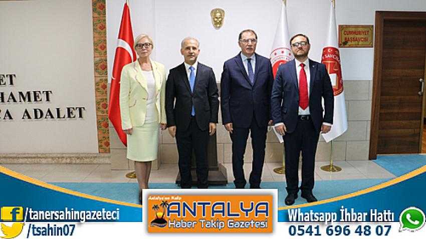Cumhuriyet Başsavcılığı makamında gerçekleşen ziyarete Cumhuriyet Başsavcısı Halil İnal ve Adli Yargı İlk Derece Mahkemesi Adalet Komisyonu Başkanı Oğuzhan Yaşar ev sahipliği yapmış olup, heyete kamu denetçileri Arif Dülger ve Celile Özlem Tunçak,  Antalya Bölge Adliye Mahkemesi Başsavcısı Rıza Can ve Antalya Bölge Adliye Mahkemesi Başkanı Orhan Özdemir eşlik etti.