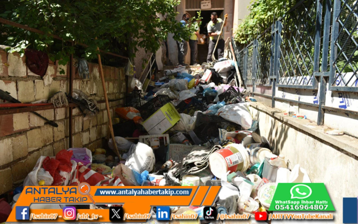Çevreyi saran kötü kokular ve yoğun şikayetler üzerine Kepez Belediyesi ekipleri, Kepez Kaymakamlığı ve Hıfzıssıhha Kurulu kararı doğrultusunda adrese müdahalede bulundu. Temizlik İşleri Müdürlüğü, Zabıta Müdürlüğü, Sağlık İşleri Müdürlüğü ve polis ekiplerinin katılımıyla kapsamlı bir temizlik çalışması yürütüldü. Binadan, çöp konteynerlerinden ve sokaklardan toplanan kağıtlardan pet şişelere kadar her türlü geri dönüşüm malzemesi ile çürümüş ve kullanma tarihi geçmiş gıda malzemeleri çıkarıldı. Apartmanın çöplerden arındırılmasının ardından Sağlık İşleri Müdürlüğü’ne bağlı ekipler, binayı deterjanlı suyla yıkayarak hijyenik hale getirdi. Antalya Büyükşehir Belediyesi’ne bağlı ekipler ise ilaçlama ve dezenfeksiyon işlemlerini gerçekleştirerek haşere ile mücadele kapsamında evi böceklere karşı ilaçladı.