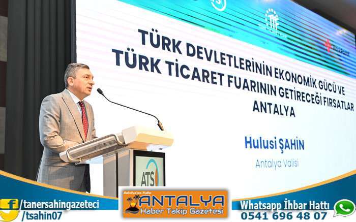 Vali Şahin, Türk dünyasının 1 buçuk trilyon dolardan fazla ekonomik gücü ile büyük potansiyele sahip olduğunu belirterek, “Bu rakamı ikiye katlayabiliriz. Antalya’da, tarım ve turizm alanında çok başarılı şirketlerimiz var. Modern ve yüksek verimli tarım faaliyetlerini işbirliği yaparak gerçekleştirebiliriz. Turizm alanında büyük bir bilgi birikimine ve potansiyele sahibiz. Her fırsatı kullanarak karşılıklı etkileşimin olacağı bir platform oluşturmamız lazım.” ifadelerine yer verdi.