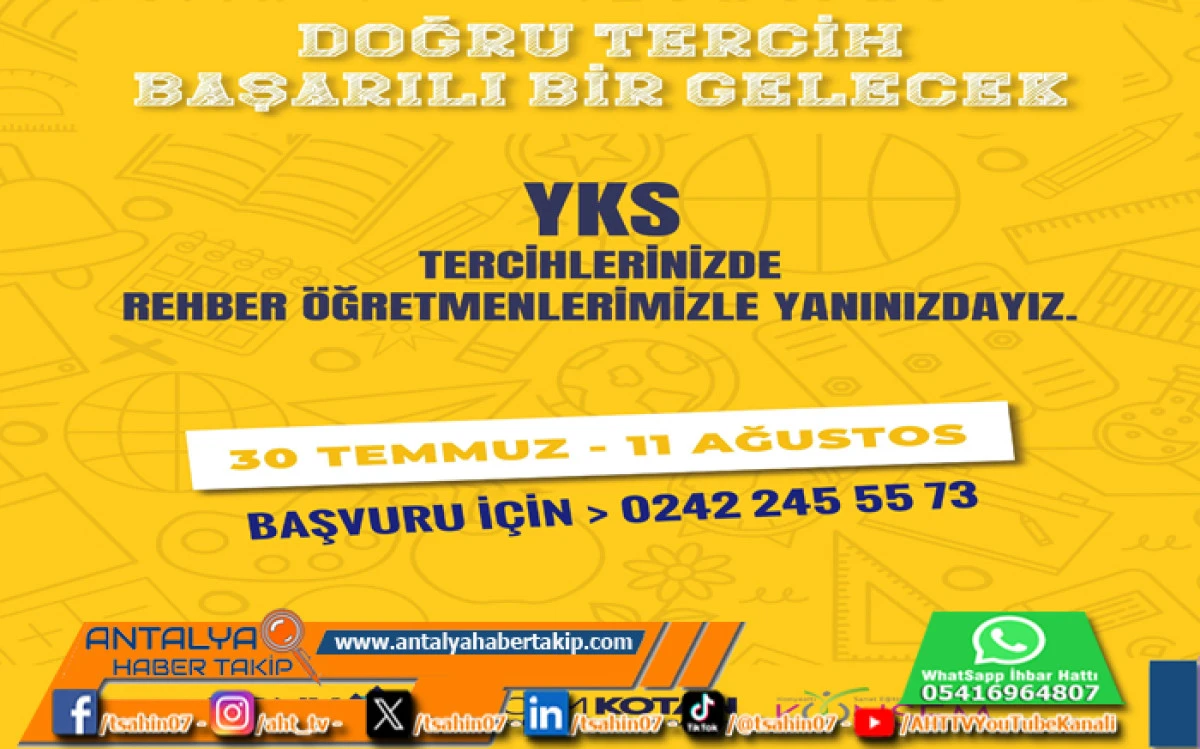 antalyahabertakip.com - 30 Temmuz - 11 Ağustos tarihleri arasında gerçekleşecek tercih sürecinde öğrenciler randevularını alarak, ücretsiz rehberlik hizmetinden faydalanabilecek.