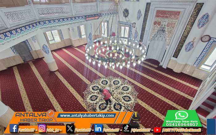 antalyahabertakip.com - Belediye Başkanı Saniye Caran’ın talimatıyla oluşturulan ekip, ibadethanelerin hijyenik ve tertemiz olması için çalışmalara başladı.