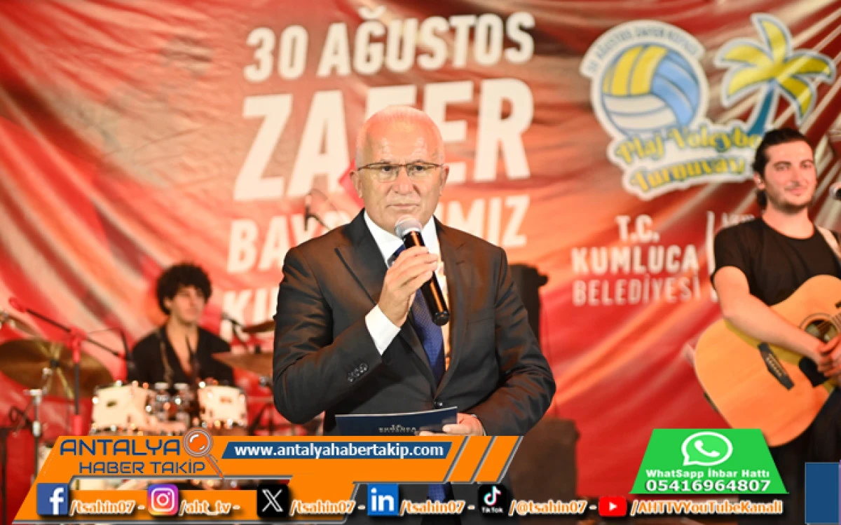 antalyahabertakip.com - 30 Ağustos Zafer Bayramı etkinliklerine; Kumluca Kaymakamı Bahadır Güneş, Kumluca Belediye Başkanı Uzm. Dr. Mesut Avcıoğlu, Kumluca Cumhuriyet Başsavcısı Gökhan Kıymacı, Kumluca Milli Eğitim Müdürü Yusuf Tekdemir, Kumluca Gençlik ve Spor Müdürü Erol Koca, Kumluca Emniyet Müdürü Mehmet Akbulut, Kumluca Sağlık Müdürü Mehmet Çiftçi, Kumluca Müftüsü Bedir Aydın, Ak Parti İlçe Başkanı Bekir Paslıkılıç, Cumhuriyet Halk Partisi İlçe Başkanı Fahretdin Karaöz, Milliyetçi Hareket Partisi İlçe Başkanı Ömer Tekin, Demokrat Parti İlçe Başkanı Ramazan Hoyrazlı, Saadet Partisi İlçe Başkanı Ergün Eren, Büyük Birlik Partisi İlçe Başkanı Mustafa Ay, Yeniden Refah Partisi İlçe Başkanı Nasuh Yaşar, Kumluca Ticaret ve Sanayi Odası (KUTSO) Yönetim Kurulu Başkanı Fahri Özen, Kumluca Ticaret Borsası (KUTBO) Yönetim Kurulu Başkanı Fatih Durdaş, Kumluca Esnaf ve Sanatkârlar Odası Başkanı Selçuk Çınar, Kumluca Ziraat Odası Başkanı Hidayet Kökçe, belediye meclis üyeleri, mahalle muhtarları ve çok sayıda Kumlucalı vatandaş katıldı.