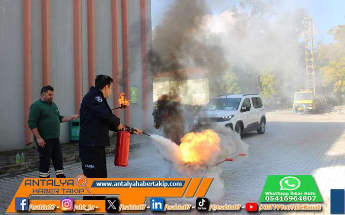 Antalya Büyükşehir Belediyesi itfaiye ekipleri, Manavgat ve Kemer ilçe hizmet birimlerinde çalışan personele yönelik yangın eğitimi ve yangın söndürme tatbikatı düzenledi.