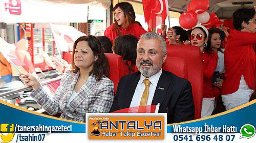 marşlar eşliğinde şehir turu yaptı. Şehir turuna Başkan Sözen ve eşi Hatice Sözen de ellerinde bayraklarla katıldı. Daha sonra AKM önünde toplanan