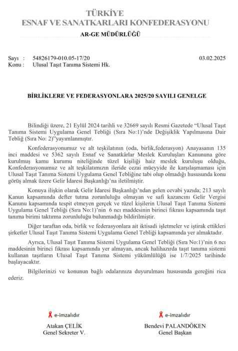 Bugüne kadar Darphane ve ütst kuruluşlar tarafından, "Akaryakıtı gider olarak kullanan tüm araçlara Taşıt Tanıma Birimi (TTB) takılması zorunludur." şeklinde genelgeler ve açıklamalar yapılmıştır. Ancak, 03 Şubat 2025 tarihinde, TESK tarafından Gelir İdaresi Başkanlığı'nın görüşü doğrultusunda "Basit Usul Muhasebe tutan esnafın araçlarına TTB takma zorunluluğu olmadığı" açıklanıştır.
